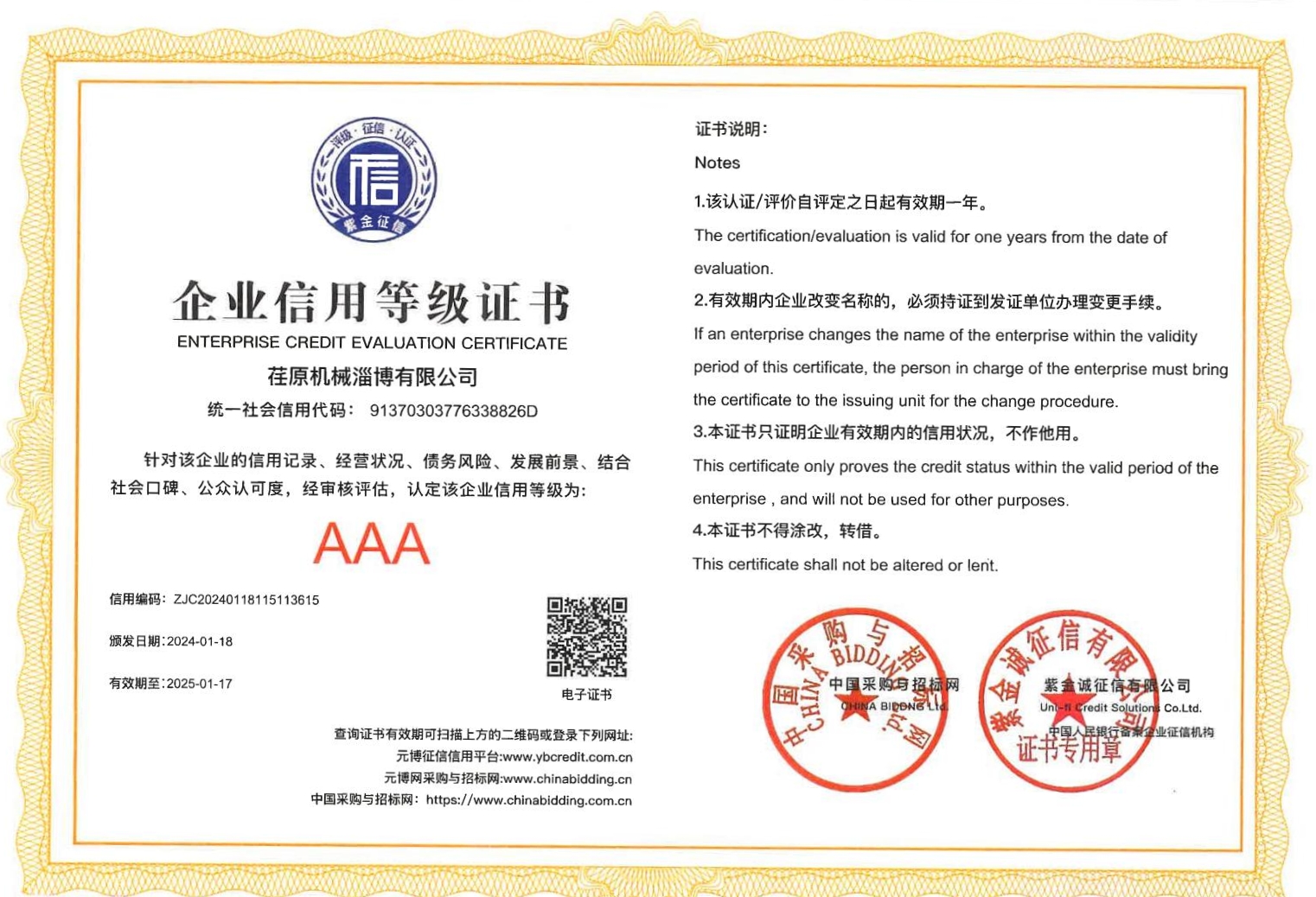 • AAA企業(yè)信用等級(jí)證書(shū)